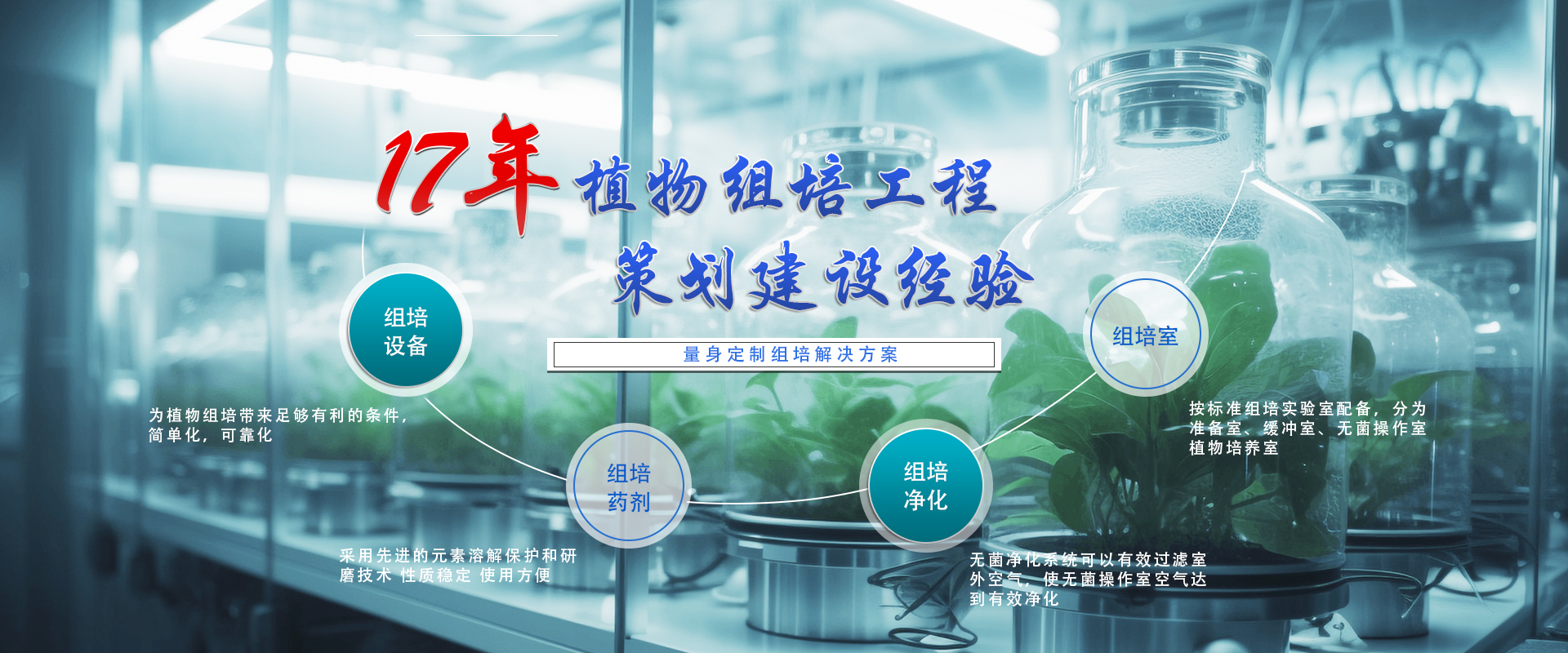 我們一直致力于組培室的科技實用與節能創新的組建融合,無論您 是批量生產、高??蒲小⒔虒W展示等用各種形式展示您的實力與形象。